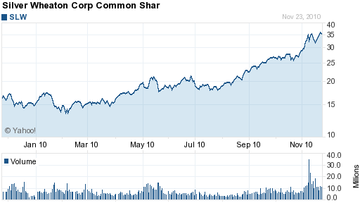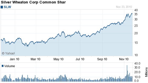 | Silver Wheaton Remains a Strong Buy Posted: 29 Nov 2010 10:59 AM PST Super Stock Screener submits: By Atif Masood Silver Wheaton (SLW) is the largest silver streaming company with a market capitalization of $12.20 billion. Over the last nine months, the company’s stock has posted a blockbuster performance (see Chart 1 below). Click to enlarge Future Profits Future profits will be driven by silver production volume, low cost of production and silver prices. Impressively, Silver Wheaton has been able to increase its silver production by approximately 49% over the last nine months. Increased production combined with rising silver prices have been the catalyst for the firm’s success. The company anticipates that by the end of 2013 its production will rise to 38 million ounces of silver and 59,000 ounces of gold. In comparison, this year’s forecasted production is 22 million ounces of silver and 28,000 ounces of gold. Silver Wheaton has already entered into 15 long term silver purchase agreements and two long term precious metal purchase agreements. Through these agreements the company will acquire silver production at $4 per ounce and gold production at $300 per ounce. Finally, metals prices could continue climbing if inflation does rise, as several economic pundits suggest. The implication is that Silver Wheaton’s margins could widen in coming years. Source: Yahoo Finance With the strong prospects of widening profit margins, Silver Wheaton should become a core portfolio holding. This also compliments the Buy recommendation from Super Stock Screener’s Ranking System, which is based on a separate set of criteria that are mainly financial statement anomalies. Therefore I recommend that investors continue to buy shares of Silver Wheaton. Disclosure: No positions. Complete Story » |