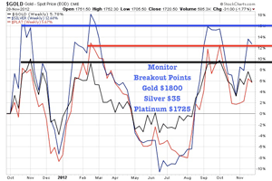 Nevertheless, we ignore the daily volatility and stick to the long term technicals and fundamentals which may be signaling that gold, silver, pgm's, uranium and heavy rare earths may reemerge as sectors where opportunity lies in 2013. Gold, silver and platinum appear to be on the verge of a major breakout as the Fed may be making noises about QE4. | ||||||||||||||||||||||||||||||||||||||||||||||||||||||||||||||||||||||||