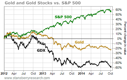 | He’s one of the world’s smartest gold analysts. You probably won’t believe what he’s doing now. Posted: 10 Oct 2014 08:00 AM PDT From Frank Curzio, editor, Small Stock Specialist: One of the world’s smartest gold analysts is making a big bet on gold. If you’re interested in making money from precious metals, you should consider doing the same… On Wednesday, I spoke with John Doody on my S&A Investor Radio podcast. (You can listen to my entire conversation with John for free right here.) John has been studying and analyzing gold stocks for more than 40 years. Today, John writes the excellent Gold Stock Analyst newsletter. His opinion on gold stocks is so respected, he has been quoted in Barron’s, The Financial Times, the Washington Post, and the Wall Street Journal. And he told me that nearly his entire $12 million fortune is now invested in gold today. This might sound crazy… The price of gold has gotten crushed over the past few years. The metal is down more than 20% since the start of 2012. And gold stocks have fared even worse. The benchmark gold-stocks fund, the Market Vectors Gold Miners Fund (GDX), is down more than 55% since January 2012. For comparison, the S&P 500 is up more than 55%.