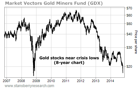 Why commodities are getting crushed today Posted: 04 Nov 2014 07:50 AM PST From Sean Goldsmith in The S&A Digest: The dollar staged a strong rally following the Fed’s announcement that it would end quantitative easing… And commodities, once again, got crushed. The dollar and commodities have an inverse relationship… As the dollar goes up, commodity prices generally go down, and vice versa. The main reason for this relationship is simple: Commodities are priced in dollars. A stronger dollar means it takes fewer dollars to a buy a given commodity. Likewise, when the dollar rises against a basket of foreign currencies, foreign buyers have less buying power. The dollar’s recent parabolic move has crushed gold and silver. Gold and, to a lesser extent, silver are particularly vulnerable to dollar fluctuations. As we saw during the subprime crisis, gold prices soared as the world feared a collapse in the dollar. Take a look at this chart of the dollar versus gold and silver over the past four months… Gold stocks are in the doldrums. Gold stocks – as measured by the Market Vectors Gold Miners Fund (GDX) – recently hit their lowest point since the crisis in October 2008… Even with the massive selloff in gold stocks, is it time to buy? We asked S&A Resource Report editor Matt Badiali for his thoughts… Citing geology expert Brent Cook’s presentation at the recent New Orleans Investment Conference, Matt noted that all-in gold production costs for major developers are more than $1,400 an ounce today. Meanwhile, the price of gold is less than $1,200 an ounce. Gold companies are selling every ounce of gold at a large loss… And miners are trying to stop the bleeding by cutting exploration and development costs. Think about that for a minute… The only way these mining companies make money is by selling gold. Today, they’re cutting spending on finding and building new gold deposits. Their shortsightedness today will ensure that when the market finally moves higher, they will have little gold to sell on the upswing. It’s the classic commodities cycle. Brazil is getting crushed… And so is one of our favorite short candidates… For many years, Brazil has been one of the world’s most popular emerging markets. It’s the largest economy in South America. It has vast resource wealth and tremendous potential growth ahead of it. That’s why Brazil is included in the popular “BRICS” club… which is an acronym that describes the major emerging-market economies of Brazil, Russia, India, China, and South Africa. When investors talk about countries with massive potential in the 21st century, Brazil is always mentioned. Brazil is heavily dependent on commodities like iron ore, oil, and agriculture, which have been crushed due to a rising dollar and decreasing demand. The selloff is also putting downward pressure on Brazil’s economy. And one stock in particular is selling off harder than most: state-run oil company Petrobras. The $71 billion company operates more like a socialist enterprise than a business. Longtime readers shouldn’t be surprised at our skepticism in investing in companies run by government officials. Our most recent warning came from Editor in Chief Brian Hunt in yesterday’s DailyWealth essay titled “A Timeless Lesson on Investing With the Government“… The bureaucrats running government agencies are not incentivized to produce profits. They are not incentivized to improve the long-term value of a business. Bureaucrats are incentivized to spend their entire budgets and grow larger. This allows them to acquire more power… and bigger budgets for next year… which allows them to acquire more power and bigger budgets for the year after that. Compare this to an entrepreneur who has his own money on the line. He’s going to do his best to keep costs down, instead of intentionally blowing his budget. He’s going to do his best to hire only employees he needs… rather than hire as many people as possible. He’s going to keep a close eye on his cash flow or he’ll go broke. Petrobras is sitting on huge oil discoveries… But the oil is far offshore and super-deep. In fact, some of the technologies necessary to extract oil from those levels haven’t even been invented yet. An abundance of deepwater oil means it’s expensive (if not impossible) for Petrobras to extract it. The company announced a nearly $240 billion, five-year capital expenditure plan in 2012. Petrobras plans to produce 5.7 million barrels per day by 2020. Of course, oil being below $80 a barrel today crimps those plans. Perhaps this is why Petrobras’ oil production has flattened out. In 2013, it averaged 2.7 million barrels per day… the same levels it produced three years ago. We’re not the only ones skeptical of Petrobras. Renowned short-selling hedge-fund manager Jim Chanos has been short since 2012. He’s skeptical of the company’s ability to produce its deepwater oil… And he doubted investors would benefit even when oil went for more than $100 a barrel. (Today, it’s around $79 a barrel.) Meanwhile, Petrobras is generating about $26 billion in cash flow a year… But it’s spending $45 billion. So it has to borrow money to cover its $19 billion shortfall. Porter brought up a similar point at the New Orleans Investment Conference. He presented the following chart, showing Petrobras’ mounting debt and falling cash flow. In addition to cash flow problems, Brazil refuses to let Petrobras raise domestic fuel prices in line with world prices. Thanks to the government, gasoline in Brazil sells for close to 25% less than the cost of importing it. That boosts domestic demand, but crushes Petrobras’ earnings potential. Shares of Petrobras were down as much as 16% on Monday. They’ve fallen more than 40% since the beginning of September. Crux note: Right now, you can get one of the most comprehensive guides to resource and commodity investing Stansberry Research has ever publ